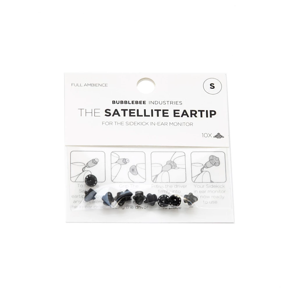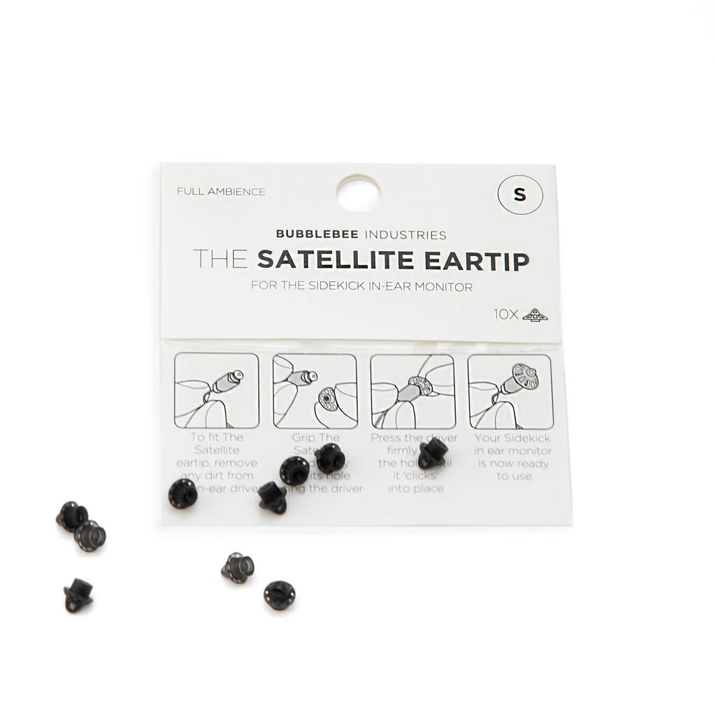 The small, 10-pack of The Sidekick Satellite Eartip from Bubblebee is an accessory eartip for the Sidekick In-Ear Monitor (sold separately). This eartip offers comfortable all-day wearability and full ambience of your environment, while still having crystal clear communication delivered to the left, right, or both ears.