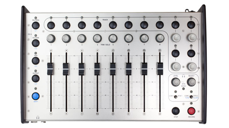 Linear fader controller for the 788T Digital Recorder. Includes 100 mm linear faders, rotary trim control, adjustable single-band parametric eq, pan control, and solo per input. Rotary level controls for L, R, Aux 1, and Aux 2 tracks and outputs. Also offers two PL comm return inputs. Powered by 788T USB connection.
