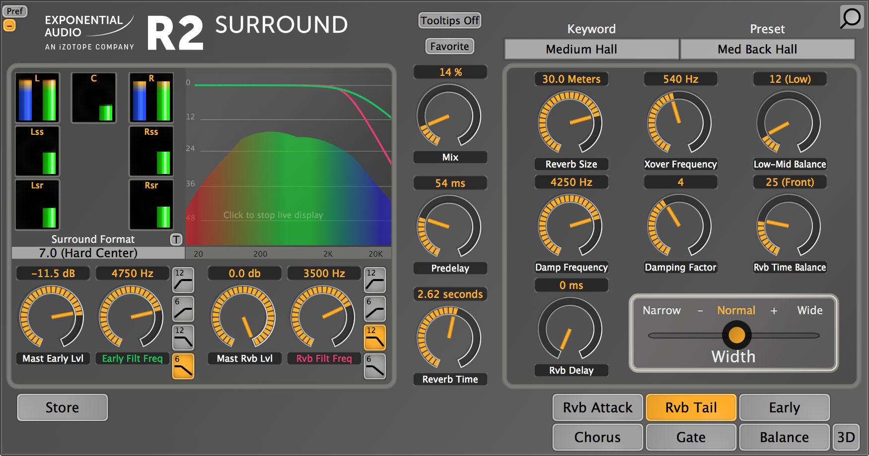 With R2 Surround by Exponential Audio, you’re equipped to add lush, warm-sounding reverb to your surround productions in up to 7.1 format.