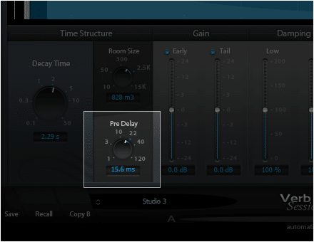 - PreDelay controlling the time at which the reverberation portion of the effect starts to be heard, with respect to the DIRECT signal