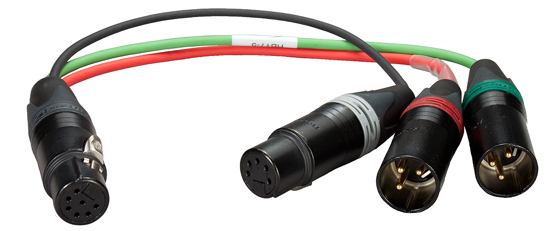 7-pin XLR female to dual 3-pin XLR male connectors and returns via 5-pin XLR female connector |