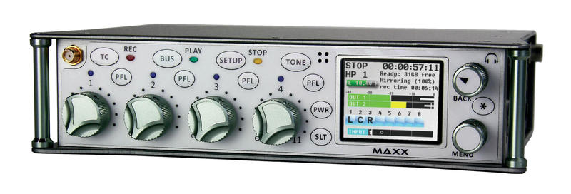 The Maxx is a powerful new tool for your sound bag. It’s an audio mixer, recorder, 2-Channel wireless transmitter, timecode reader/generator and visual timecode slate – all in one small package.