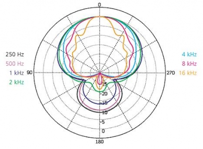 The sound quality of the CMIT 5 remains consistent even if the microphone is rotated on its axis, since its directional pattern is the same in both the vertical and horizontal planes.