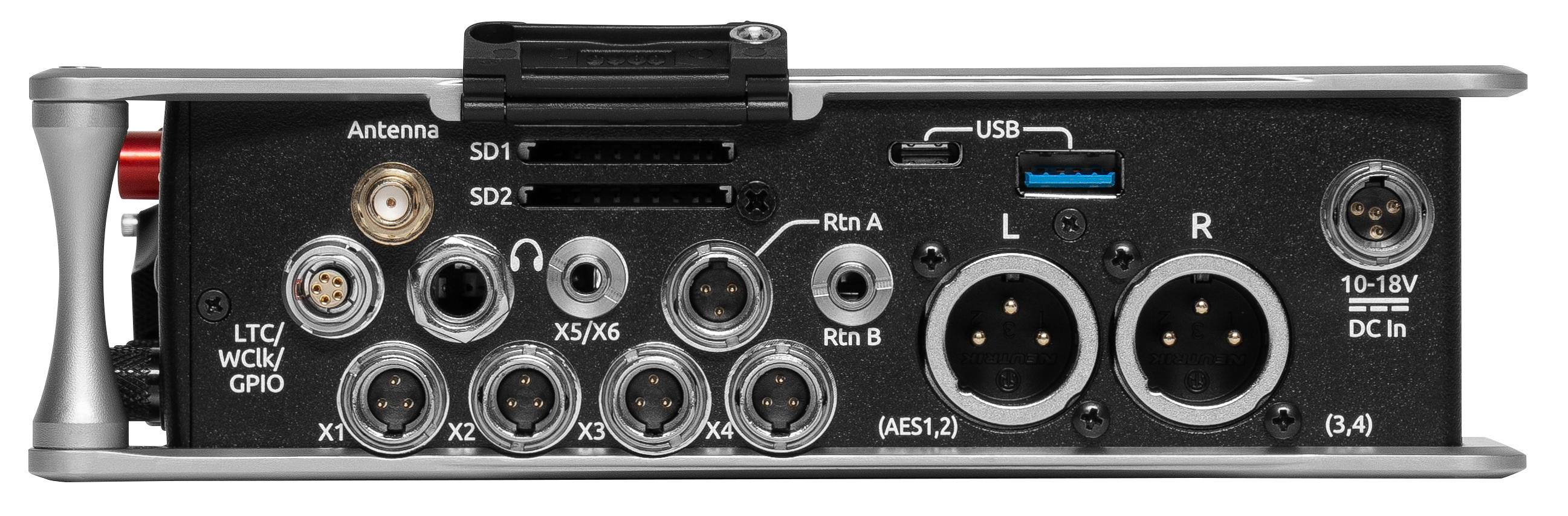 Many features have carried over from the premium Sound Devices’ Scorpio, such as the new 8-Series preamplifier design, 2 SD card slots, internal 256GB SSD, and dual L-Mount battery charging and powering. Alternatively, power your 888 using a smart battery, NP-1 battery, or an in-line power supply via its TA4 DC input. The ultra-accurate, fully-featured timecode generator contains its own battery to hold timecode for up to four hours after power off.