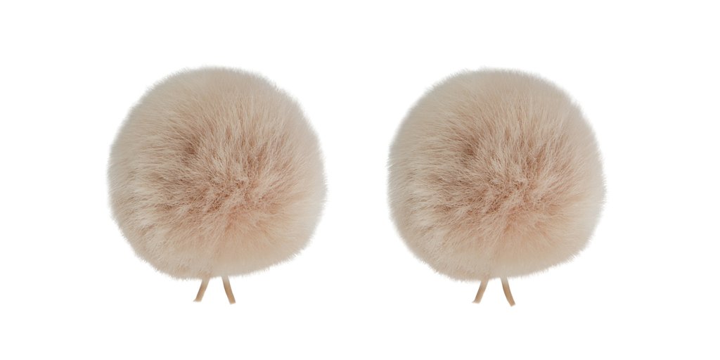 The Twin Windbubbles from Bubblebee Industries is a set of two miniature imitation-fur windscreens that easily fit on lavalier microphones with a diam