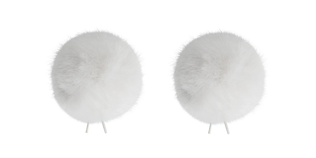 The Twin Windbubbles from Bubblebee Industries is a set of two miniature imitation-fur windscreens that easily fit on lavalier microphones with a diameter of 0.19 to 0.35" (5 to 9mm). The tiny elastic-wire legs make it easy to mount them on the microphones. They can be used to reduce wind noise and vocal plosives in outdoor environments, and are designed to not fall off during use. Examples of compatible microphone models for this windscreen include the Sanken COS-11 (with metal windscreen), Countryman EMW and Sennheiser MKE2 without windshield.